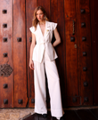 The Violette Pants are high-waisted palazzo-style trousers designed to enhance and elongate the figure. Their straight, fluid drape creates a long and sophisticated silhouette, while the wide leg adds a distinguished and elegant touch.